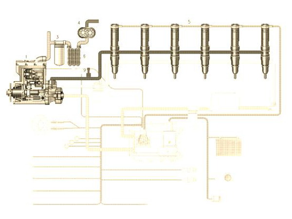 (1) El sistema utiliza aceite lubricante de motor diésel en lugar de combustible en el common rail, y tiene dos conjuntos de circuitos dedicados de aceite lubricante y combustible para garantizar la estabilidad y la durabilidad del sistema.
